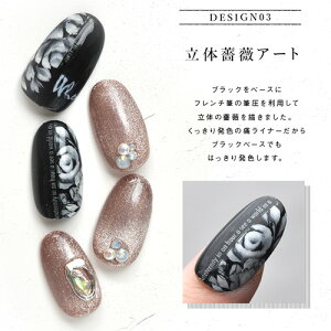 固まりやすく落ちにくいという理由から、私は筆もネイル用の筆ではなく絵の具用の筆を用意しています。 100均で購入した絵の具用の細筆です。 たらしこみネイルのやり方 ホワイトのジェルをベースに塗ったら、たらしこみアートをします。 痛ネイルに使うのは主に「ライナー」や「アート用」と呼ばれる筆を使います。 痛ネイルを上手に描きたいならば筆にはぜひともこだわっていただきたい ので 別記事で詳細にまとめました。 痛ネイル 筆と共に細かいネイル用に。 名前の衝撃よ。 その名の通り痛ネイルに向いている 一回でしっかり発色、滲まないジェル。 基本色はいつも混ぜるので セリアで購入していたのですが やっぱり黒が薄い なので基本の白と黒を買ってみました。 パウダーペン これめっちゃ画期的
